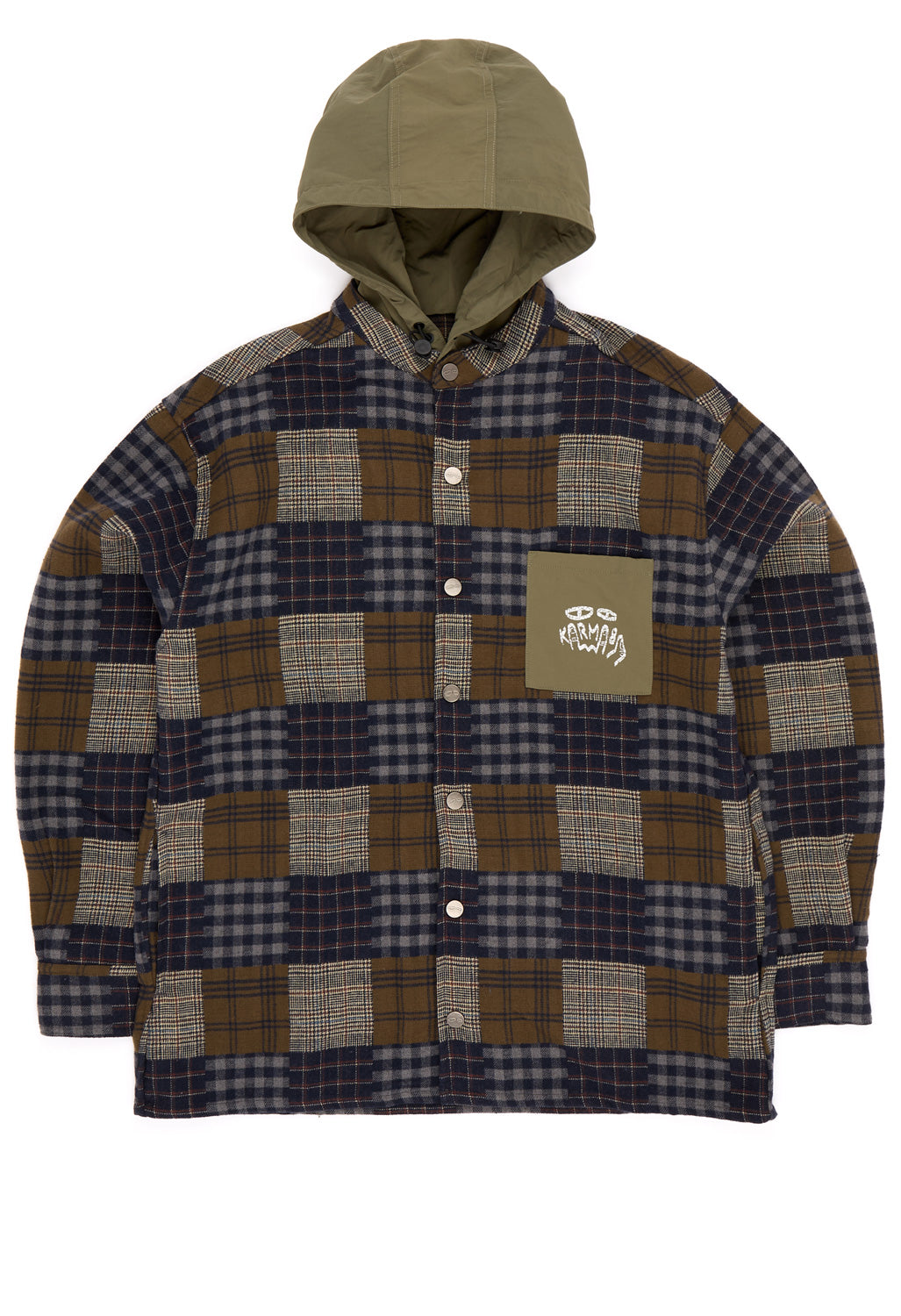 The Grip Hybrid Hooded Shirt from Karma8a is a multi-modal style, suited for bouldering use as well as civilian pursuits. The style is constructed from a polycotton flannel, a fabric long adored by dirtbags of all stripes for its countercultural credentials alongside its durability. A taslan hood offers ample protection from inclement weather, with full snap button fastening makes for stress-free on/off. Finished with a weathered and faded graphic print to the back, a nod to impact, stress and (presumably) chalk.