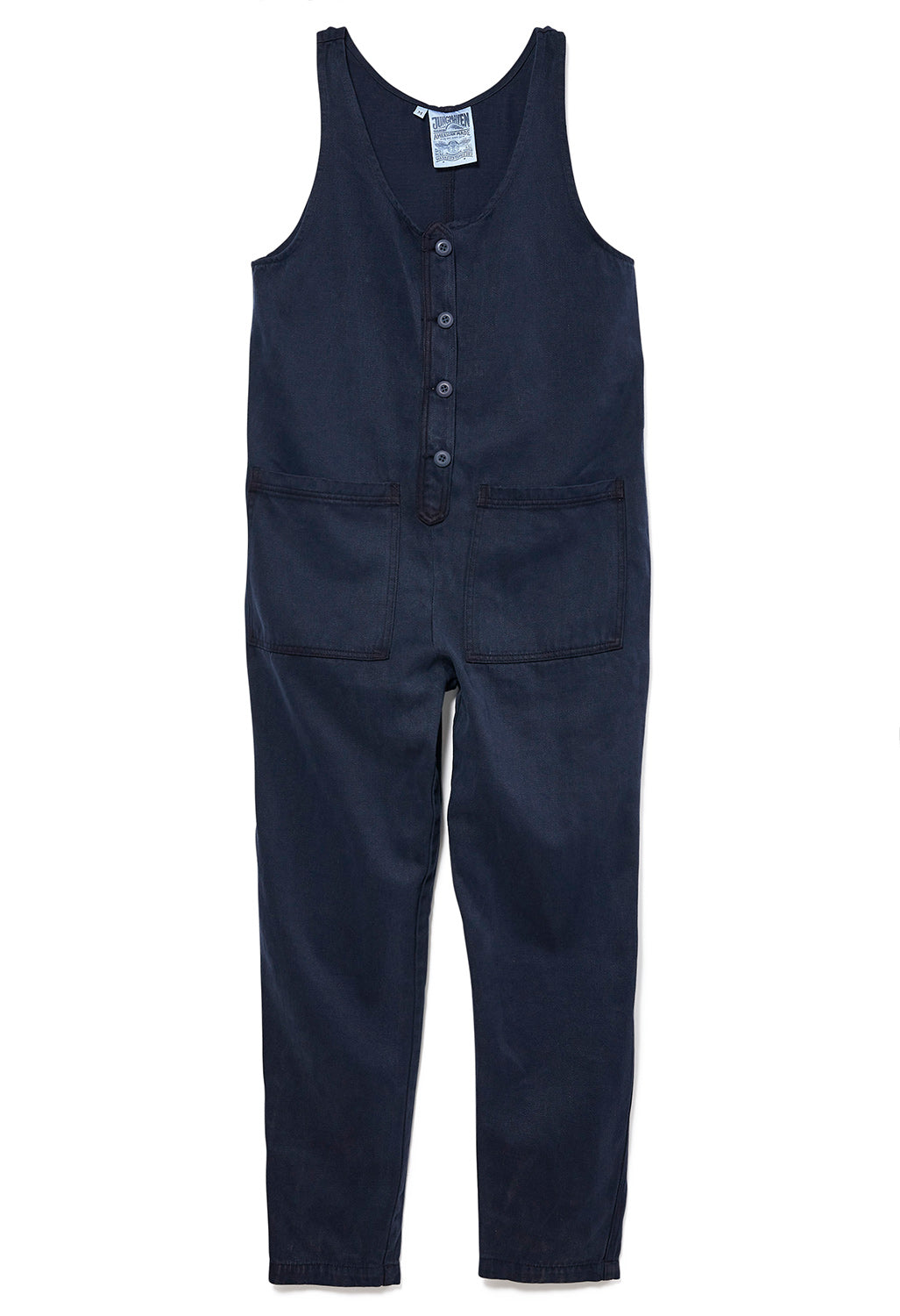 Jungmaven’s play on the jumpsuit is a laidback evocation of balmy summer days for the free of spirit. A hardy and washed-out blend of hemp and organic cotton, with two patch-on hand pockets and a button front.